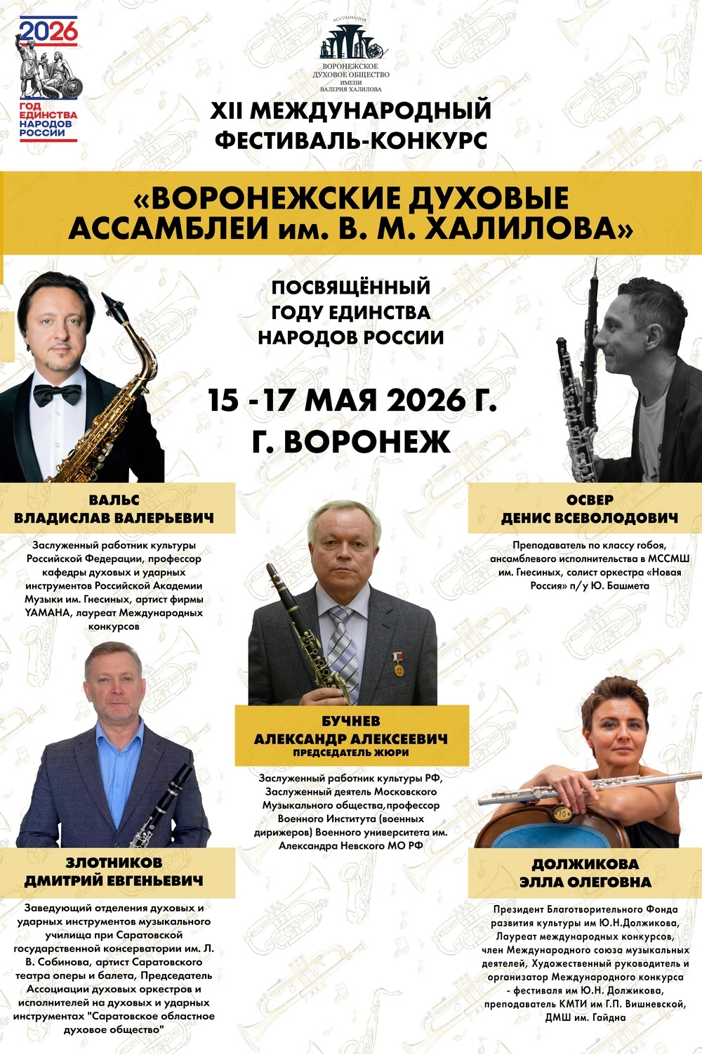 Мы рады представить вам состав жюри XII Международного фестиваля-конкурса «Воронежские духовые Ассамблеи имени Валерия Халилова».